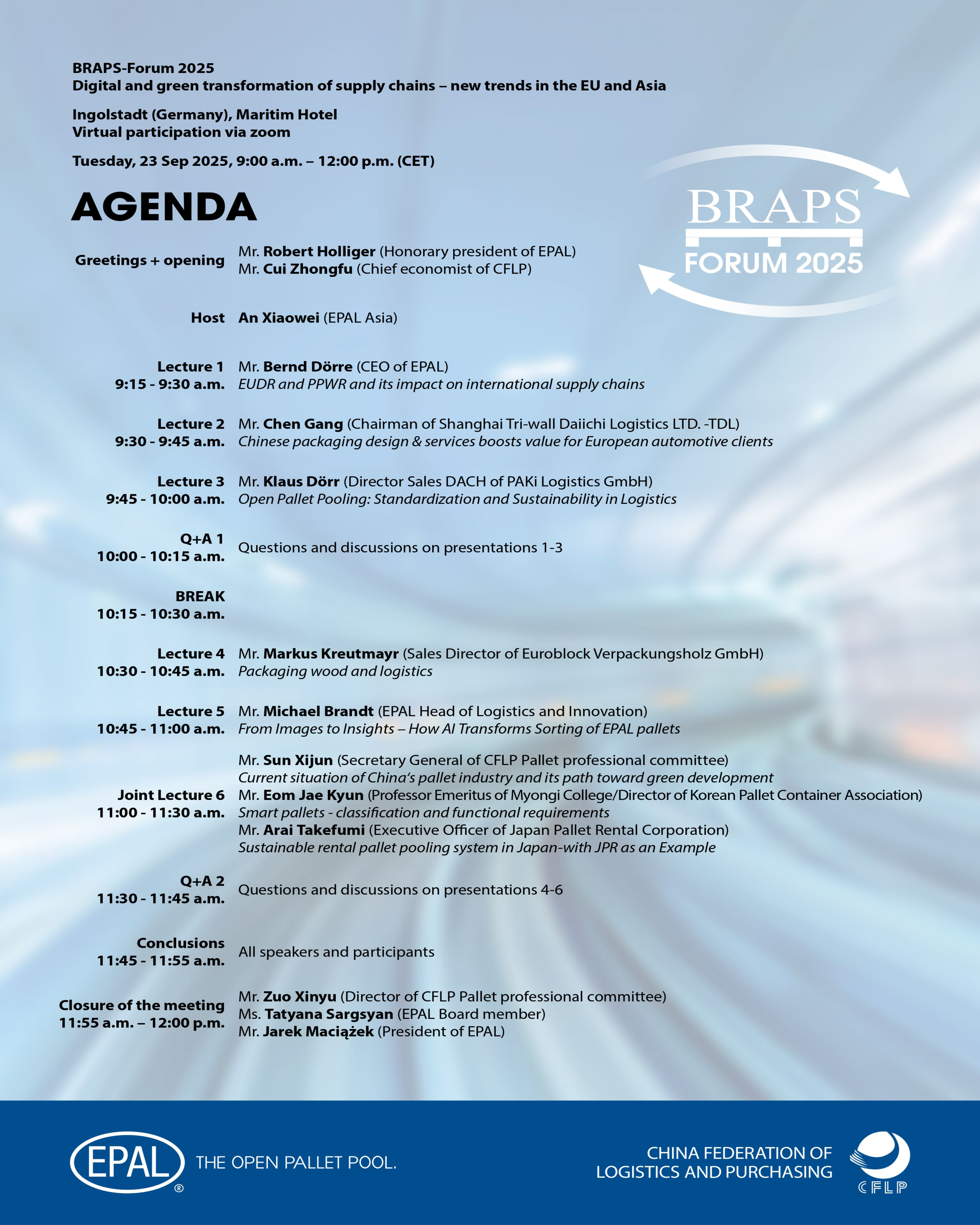 • BRAPS-Forum der EPAL und des chinesischen Verbands CFLP am 23.09.2025 in Ingolstadt