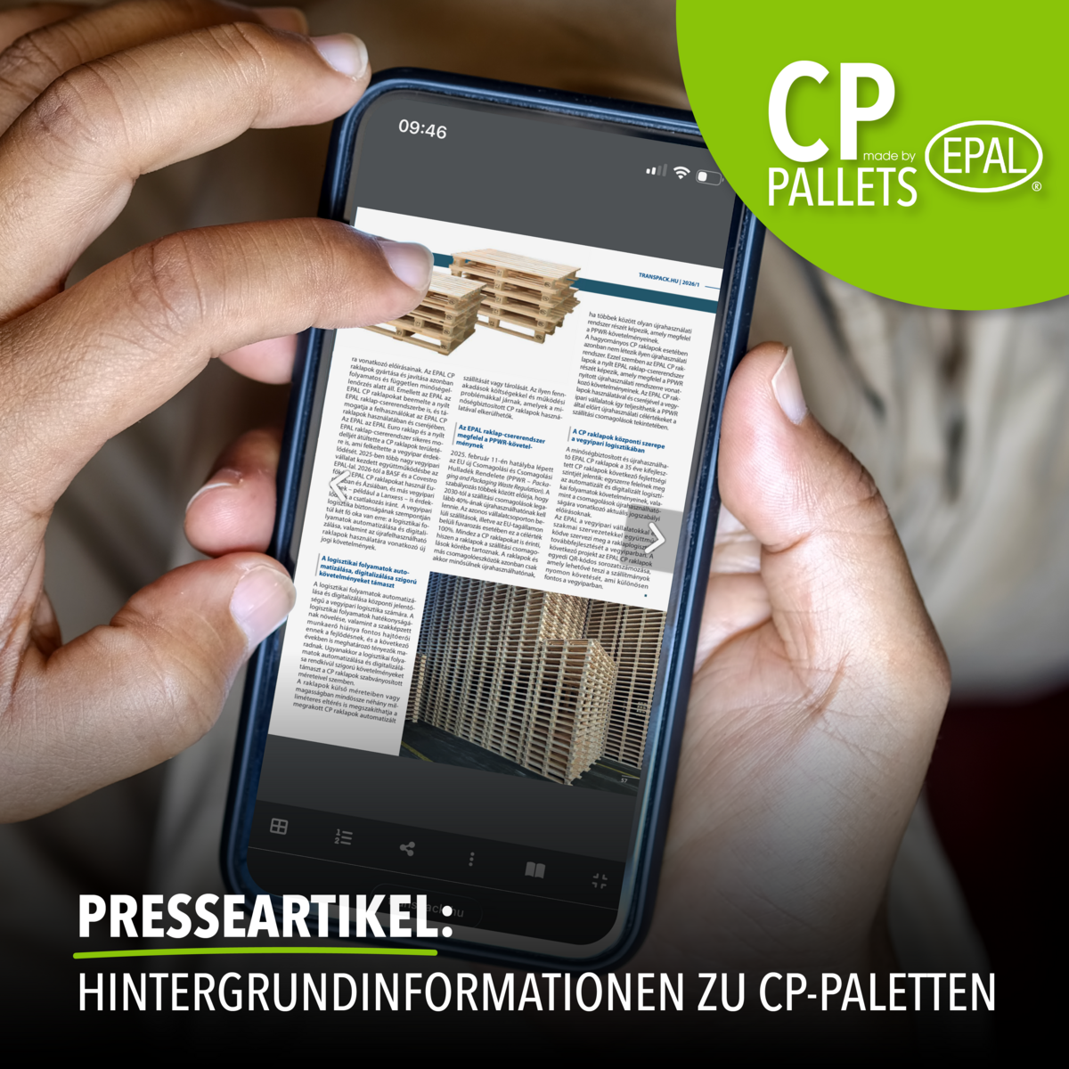 In dieser Woche berichtete u. a. die ungarische Fachzeitschrift Transpack Ungarn ausführlich über die neuen EPAL CP-Paletten. Der Beitrag greift zahlreiche Fragestellungen auf, die auch uns in den vergangenen Wochen verstärkt erreicht haben, darunter Fragen wie: Wie sind CP-Paletten entstanden? Warum sind in der Chemieindustrie spezielle Paletten erforderlich? Welche Vorteile bieten EPAL CP-Paletten im Vergleich zu herkömmlichen CP-Paletten? Welche Herausforderungen lassen sich durch EPAL CP-Paletten lösen?