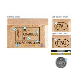 - EPAL Euro pallets treated according to ISPM 15 can be recognised by the branded markings on both central blocks on the long sides.