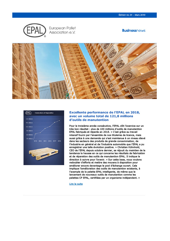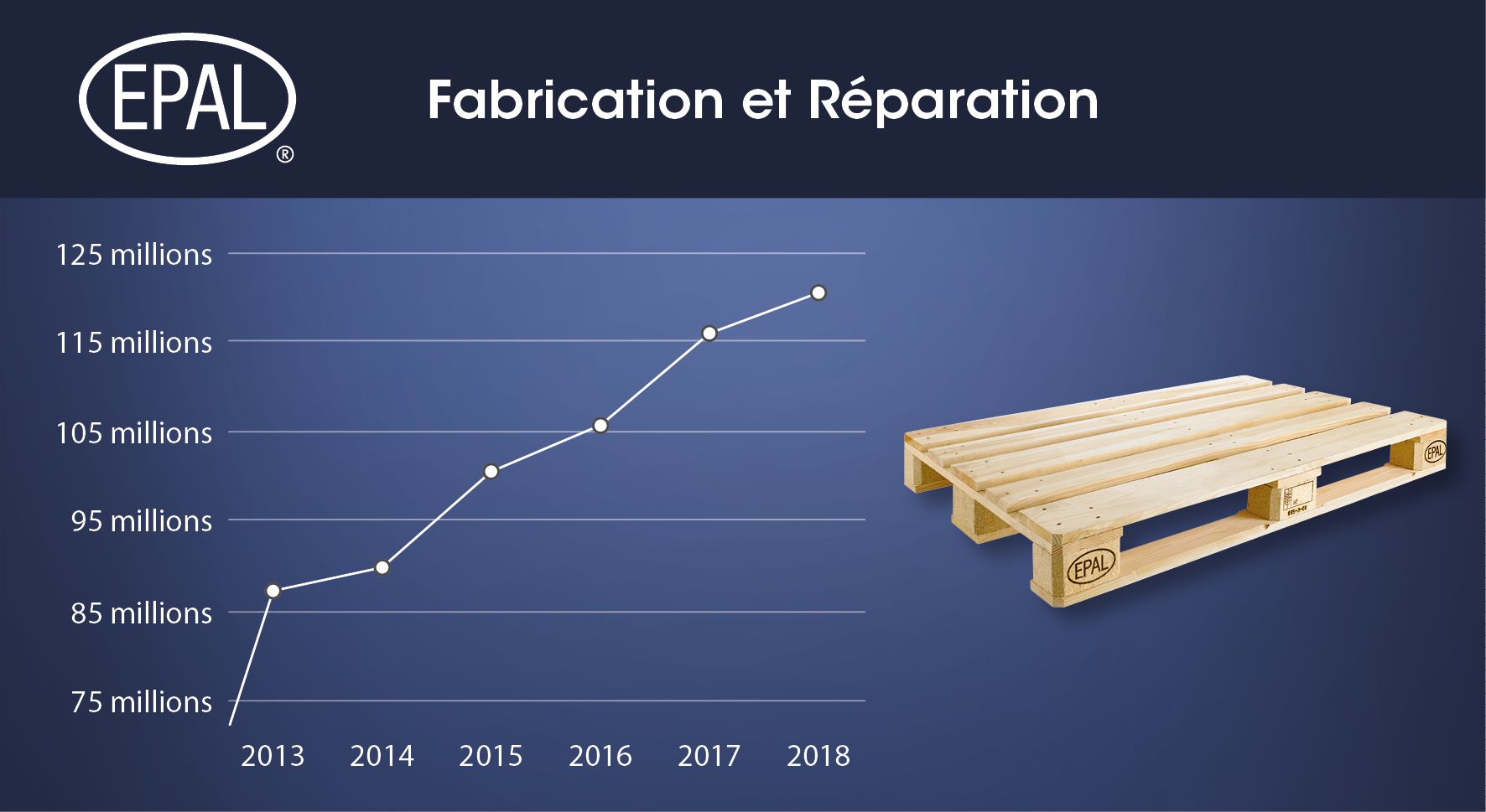Pour la troisième année consécutive, l’EPAL clôt l’exercice sur un très bon résultat : plus de 100 millions d’outils de manutention EPAL fabriqués et réparés en 2018