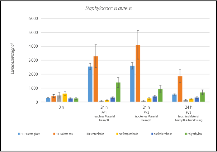 Under the above-mentioned conditions, wooden pallets achieved a more than 13 times higher antibacterial activity than the H1 plastic pallet. For the exact results please refer to the hygiene study.