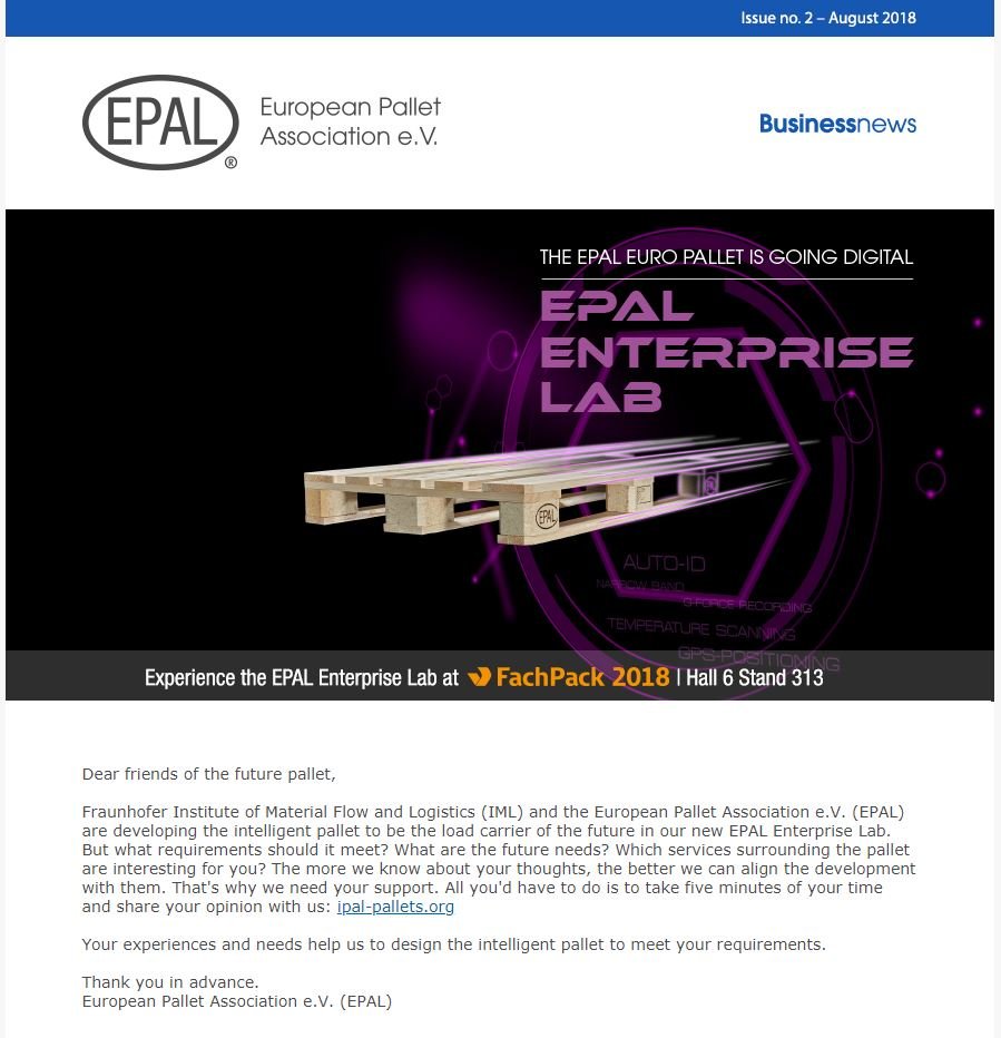 The Fraunhofer Institute for Material Flow and Logistics IML and the European Pallet Association e.V (EPAL) are developing the load carriers of the future at the newest Enterprise Lab in Dortmund (Germany). The first application of the interactive pallet was made public by the partners at LogiMAT 2018.