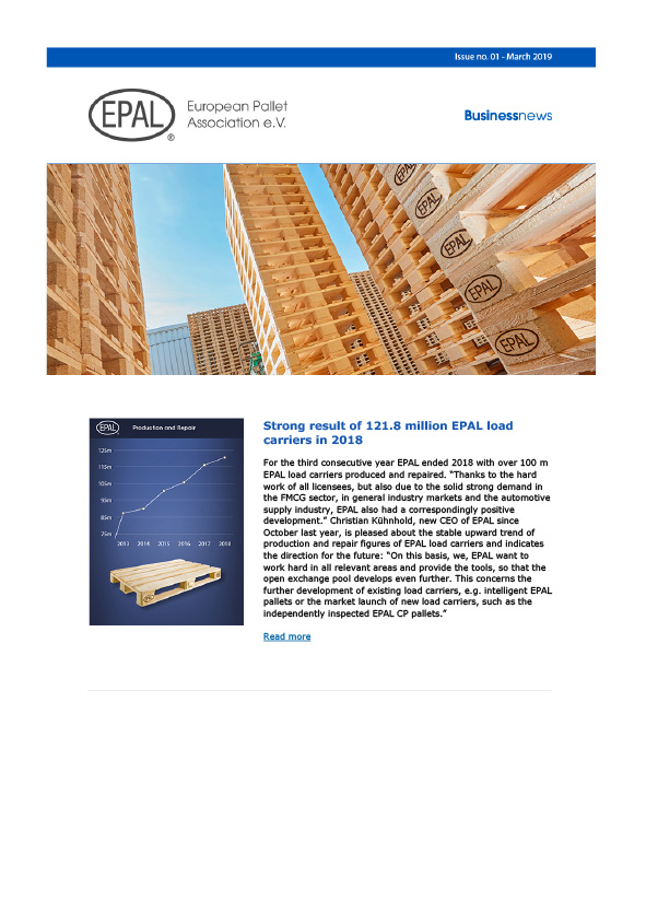 EPAL ended 2018 with over 100 m EPAL load carriers produced and repaired for the third consecutive year